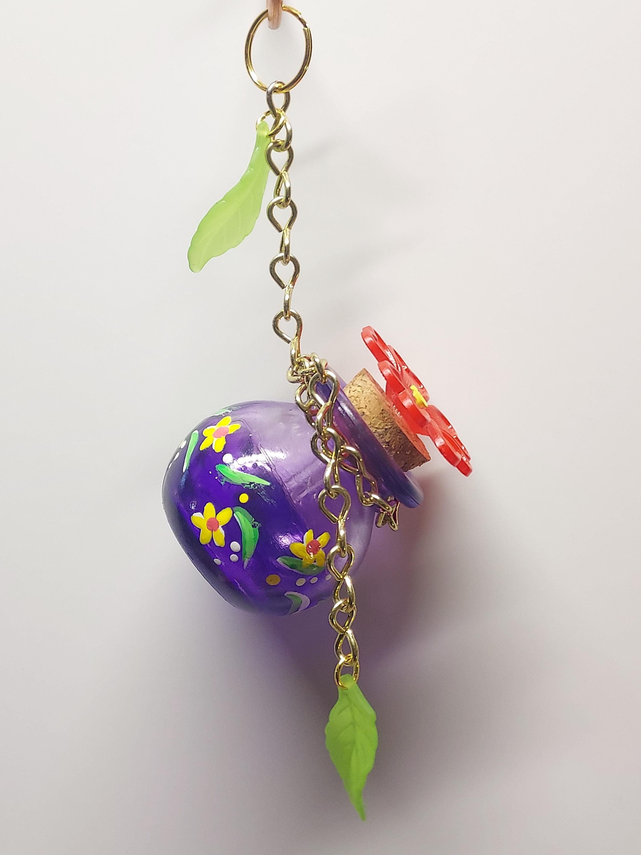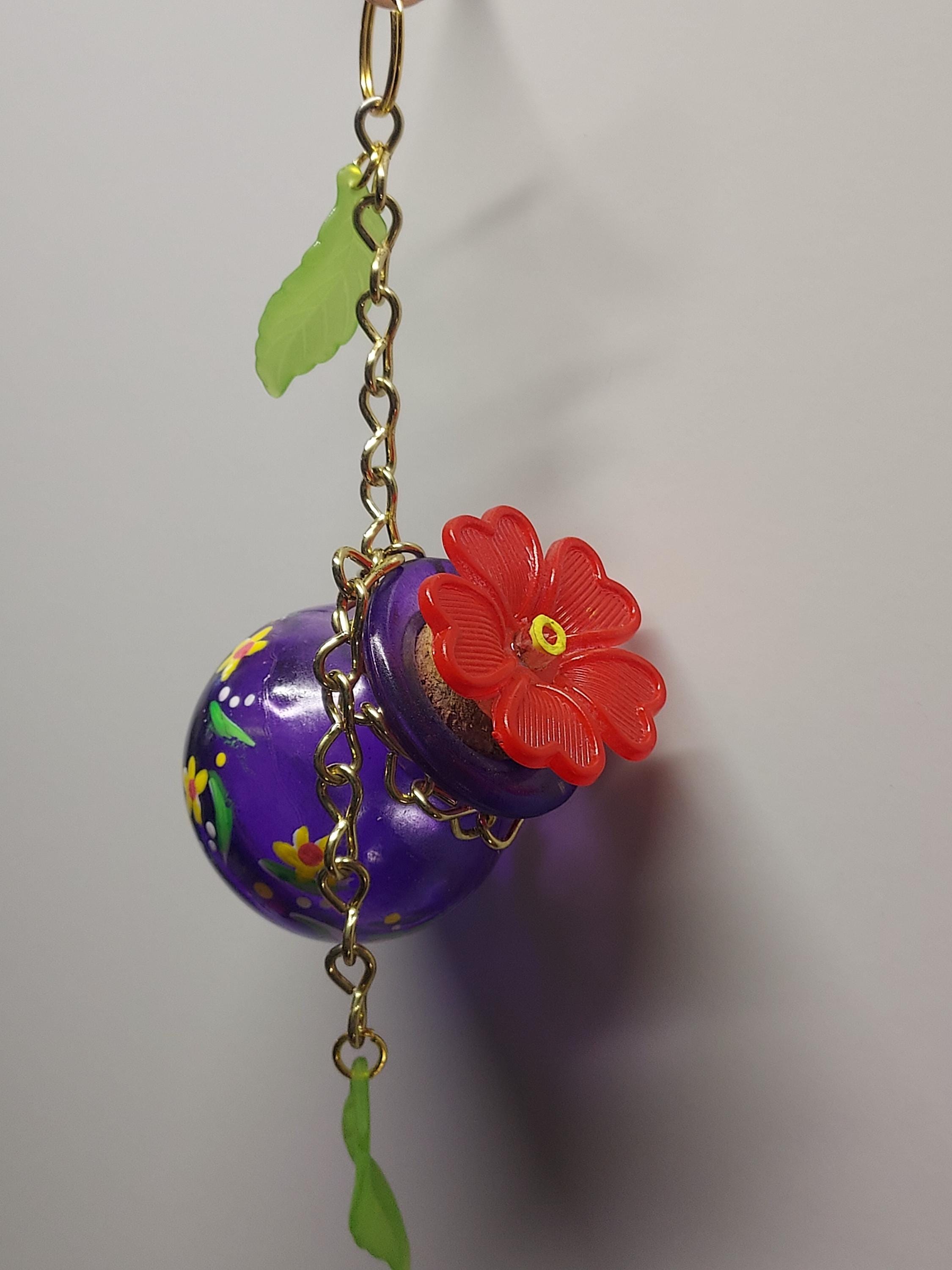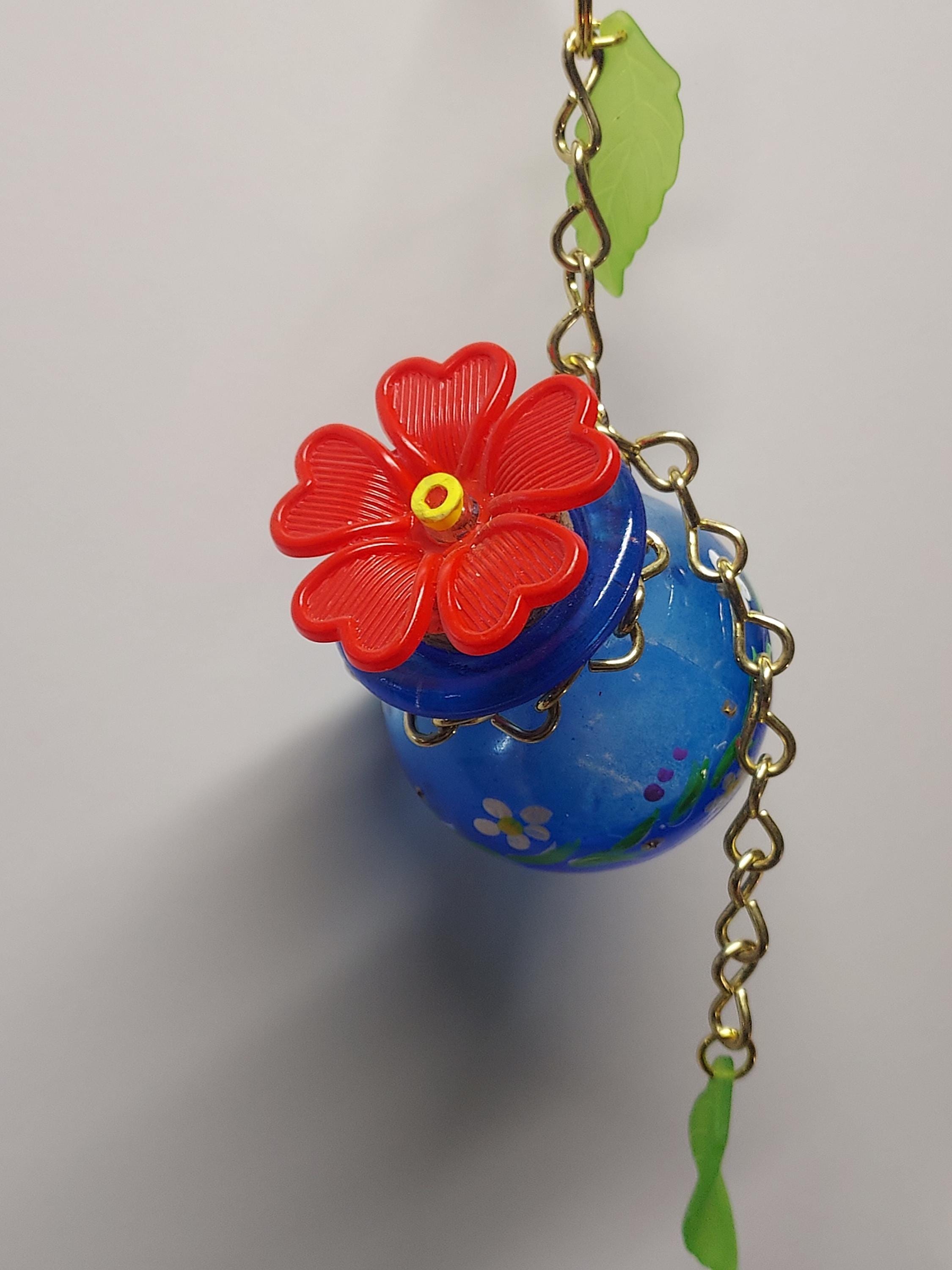 Handmade Glass Hummingbird feeder with 1 Feeding port 55ml capacity. Easy to fill and clean. Red flower.